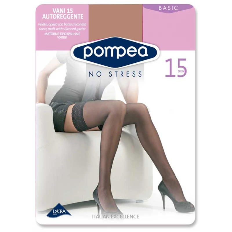 Calza Autoreggente Pompea Vany 15 den velata, opaca, per tutti i giorni, con balza in pizzo siliconata .Qualita’ Superiore Made in Italy
