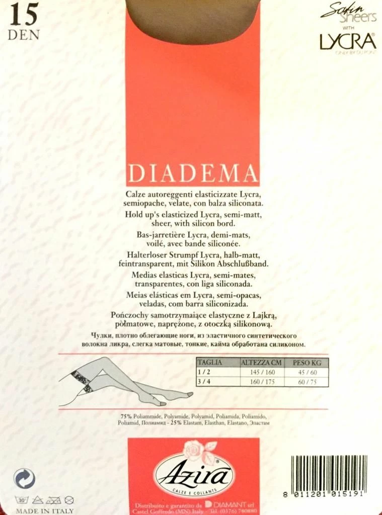 Calza Autoreggente elasticizzata velata Azira 15DEN con balza in pizzo alta 7 centimetri e silicone