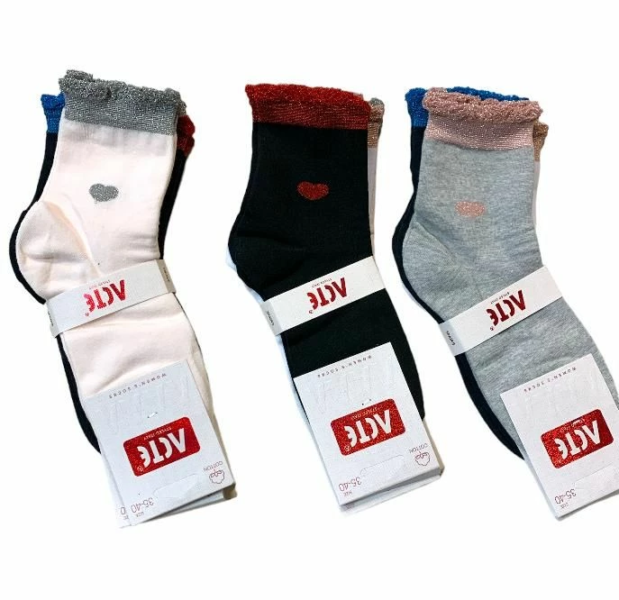 Calzino Donna corto cotone Acte 2025/15 in cotone elasticizzato tinta unjta con bordo in lurex