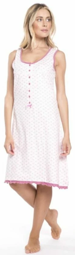 Camicia da notte spalla jersey a canottiera in cotone100% jersey leggero traspirante anallergico con apertura profonda con bottoni fantasia piccola
