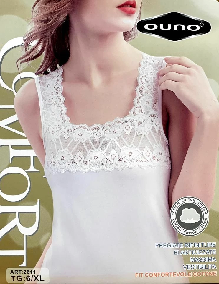 Bellissima Canottiera Donna sottogiacca cotone e pizzo Ouno 2611