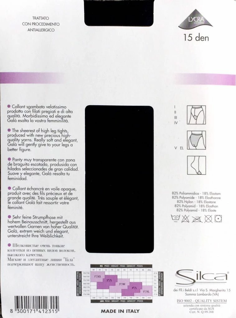 Collant Donna Silca Gala’ 15 denari velatissimo con mutanda sgambata e soletta antiscivolo ideale con scarpe aperte .Prodotto con filati pregiati e di alta qualita’.Morbido ed elegante Gala’ esalta la vostra femminilita