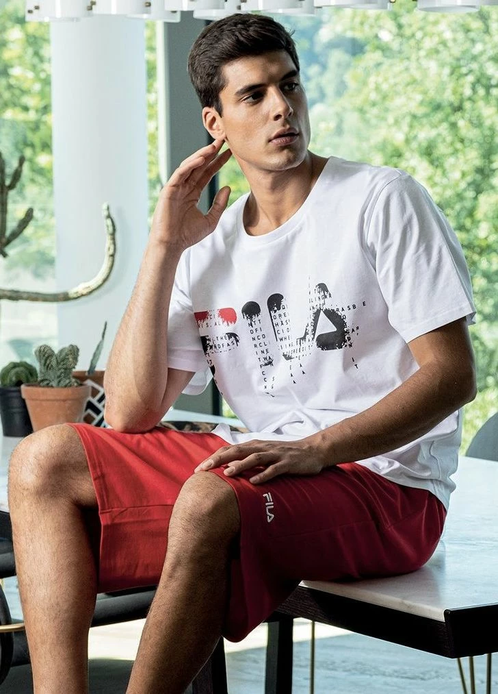 Offerta Completo Uomo corto Fila 1101 offerta maglia girocollo stampata e pantalone corto con tasche avanti in cotone pesante. Composizione : maglia 100% cotone Pantalone 95%cotone 5% elastan