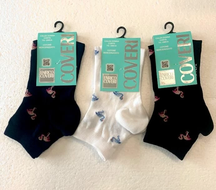 Calzino Donna Corto cotone mercerizzato Coveri Papaya 215 fantasia cigni