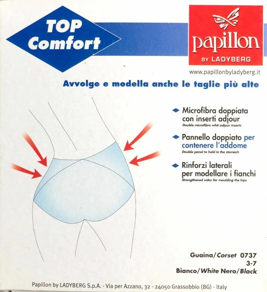 Guaina slip alto top confort Papillon Art 737 in microfibra doppiata sul davanti per contenere e rinforzi laterali per modellare i fianchi
