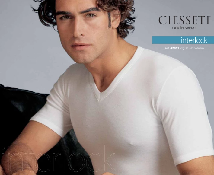 Maglia Uomo mezza manica scollo a V cotone felpato Ciesseti 42017 ottima vestibilita’ aderenza perfetta