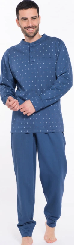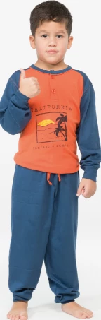 Pigiama Bambino lungo 100% cotone jersey Karelpiu’ 0165 maglia serafino stampata e pantalone tinta unita bordato