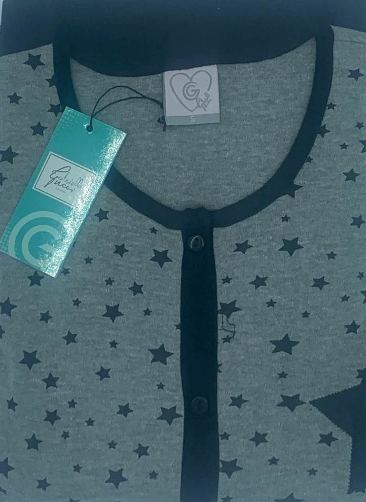 Pigiama Donna aperto cotone caldo interlock Gabriella Gucci Lola prezzo promozionalemaglia fantasia maglia tutta aperta con bottoni e pantalone con bordo