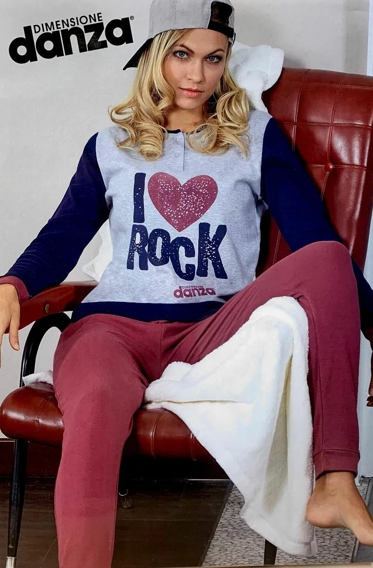 Pigiama Donna caldo cotone interlock Dimensione Danza 20159 maglia serafino stampata e pantalone tinta unita bordato
