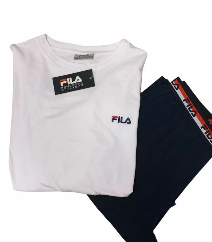 Offerta outlet campionario Pigiama Donna Fila 4073 cotone caldo invernale morbido e confortevole co maglia girocollo tinta unita con piccola scritta e pantalone tinta unita con elastico con scritta tessuto elasticizzato ottima vestibilita’ e massimo confort