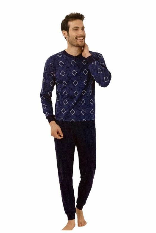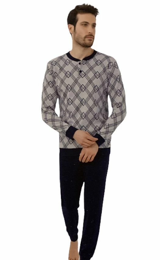 Offerta Outlet Pigiama Uomo Il Granchio 4007 100% caldo cotone invernale morbido naturale ed anallergico con maglia aperta a serafino 2 bottoni fantasia con bordo altezza vita e polsini, pantalone tinta unita con bordi alla caviglia. Prodotto con materie prime di altissima qualita’
