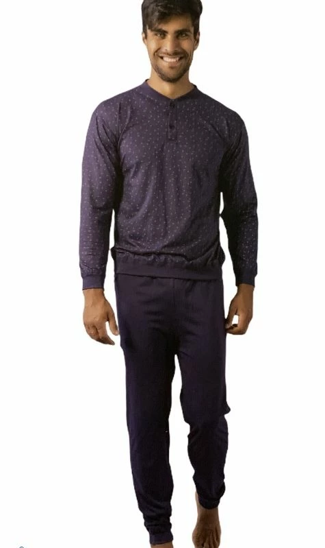 Pigiama Uomo calibrato 100% cotone Ciesseti 293 Maxi manica lunga a serafino stampa piccola con bordo sui polsi e in fondo al pantalone.