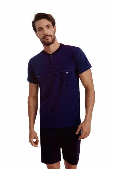 Offerta outlet Pigiama Uomo corto 100% cotone leggero estivo jersey naturale ed anallergico con maglia mezza manica tinta unita aperta a serafino due bottone e pantalone corto tinta unita.