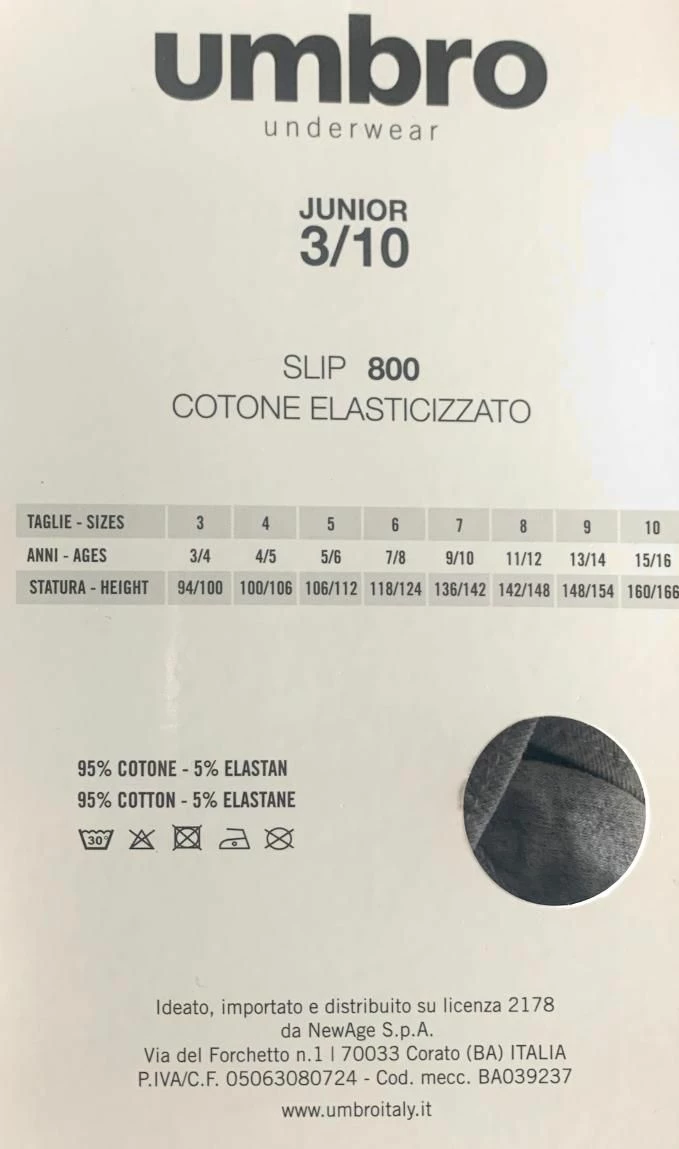 Slip Bimbo cotone elasticizzato Umbro 800 con elastico esterno con scritta