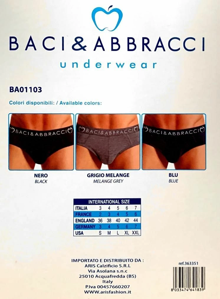 Slip Uomo cotone elasticizzato Baci & Abbracci 1103 slip uomo tinta unita con elastico esterno con scritta aderenza perfetta in cotone elastico sport e fitness