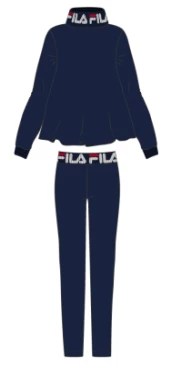 Offerta outlet Campionario Tuta Donna Fila 4064 cotone felpato Maglia girocollo con collo a lupetto con scritta , pantalone tinta unita con fascia in vita con scritta leggings tessuto elasticizzato massimo confort ed ottima vestibilita’ Composizione:95%cotone 5%elastan