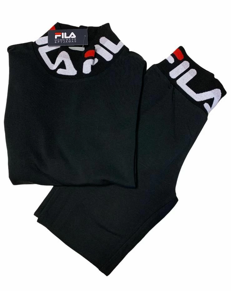 Offerta outlet Campionario Tuta Donna Fila 4064 cotone felpato Maglia girocollo con collo a lupetto con scritta , pantalone tinta unita con fascia in vita con scritta leggings tessuto elasticizzato massimo confort ed ottima vestibilita’ Composizione:95%cotone 5%elastan