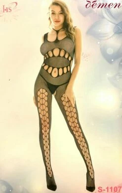 Bellissima Tuta intera sexy Bodystoking 1107 in pizzo e rete elasticizzata con apertura centrale ideale per un occasione speciale.