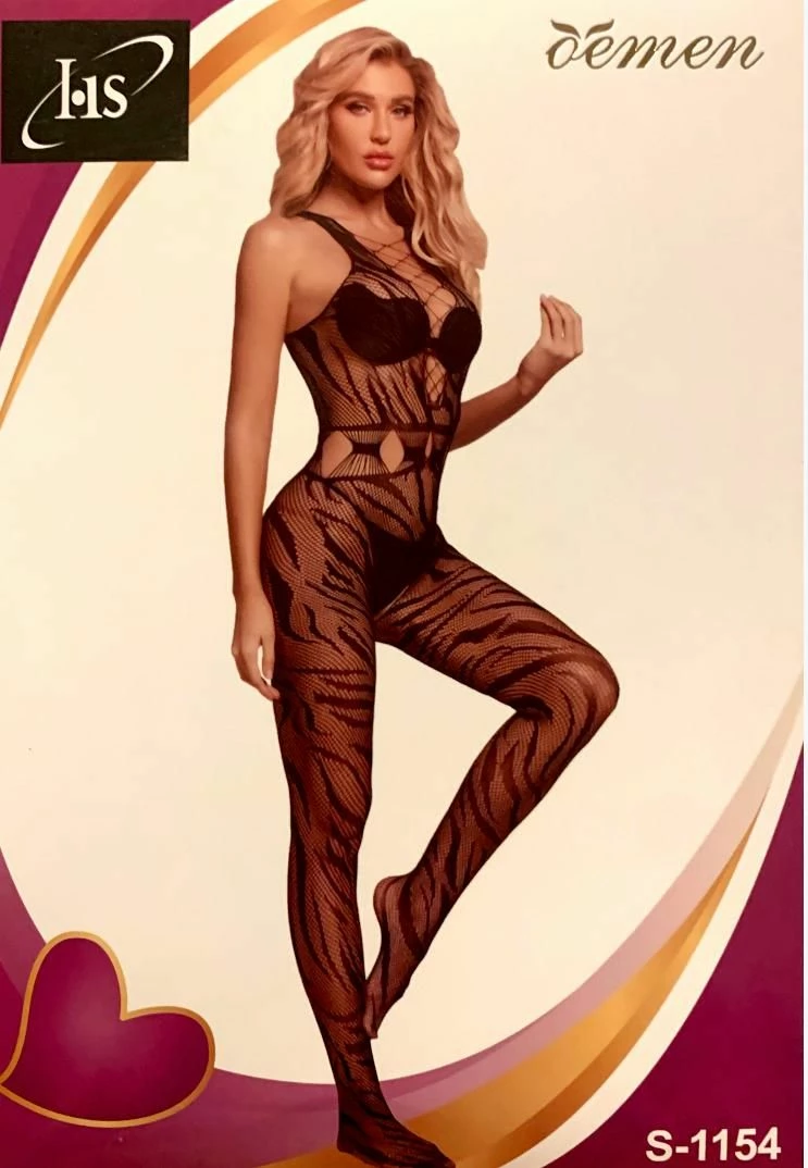 Bellissima Tuta intera sexy Bodystoking 1154 in pizzo e rete elasticizzata con preziosi brillantini e pratuca apertura centrale ideale per un occasione speciale.
