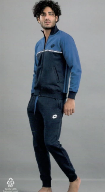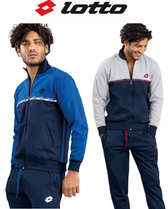 Tuta Uomo aperta cotone felpato Lotto 2011 giacca tutta aperta con lampo e tasche avanti maniche con polso e bordo in in vita, pantalone con bordo alle caviglie e tasche avanti.