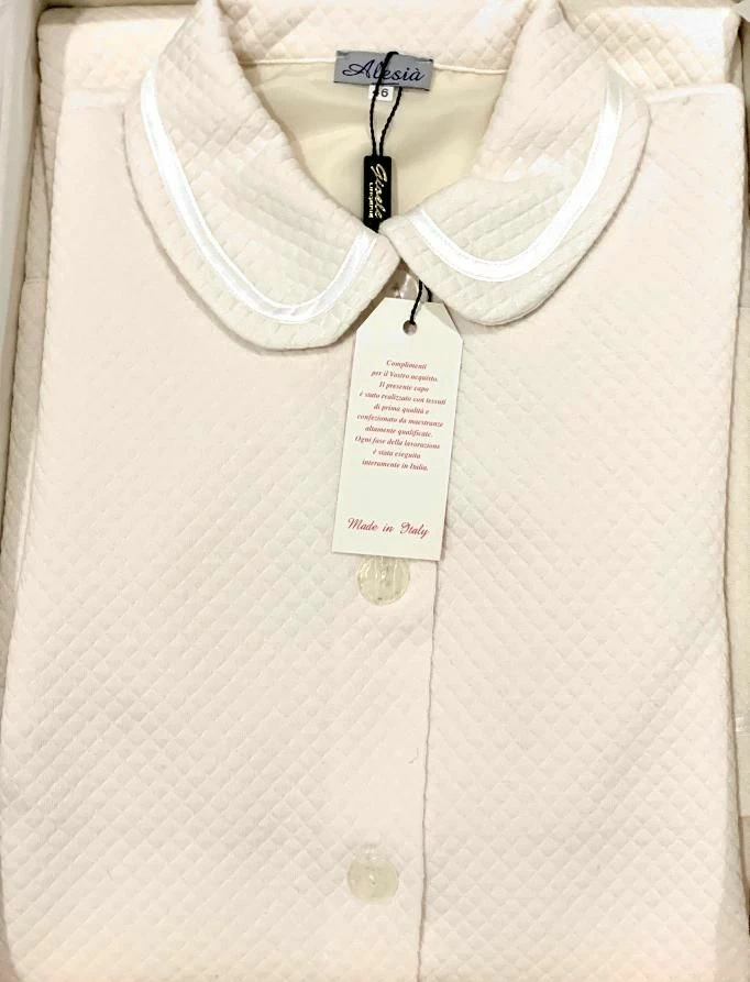 Vestaglia Donna abbottonata trapuntata Gioele Lingerie Alba Outlet scontatissima in misto cotone made in Italy prodotta con filati di qualita’
